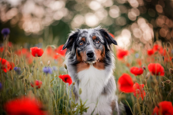 Mai 2024: Stella zu finden war Schicksal und Glück zugleich. Sie stammt von den American Aussies, die Zucht aus der beide Eltern von Ida kamen und die ich daher seit über 15 Jahren immer verfolgt habe. Außerdem wohnt dort Rosies Papa Mak. Stellas Eltern, Abi & Mak, wurden beide von den Diamond Aire Aussies aus Amerika importiert - ein Hall of Fame Kennel, dem die Erhaltung der Vielseitigkeit des Australian Shepherds besonders wichtig ist. Da Idas Vater ein Diamond Aire Aussie war (Diamond Aire Midnite Cruise) verfolge ich auch diese Zucht seit vielen Jahren. Und so hat eines das andere ergeben. ☺️